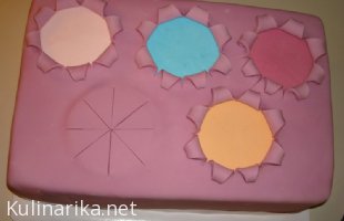 domov » foto albumi » album: Kako narediti "cvetočo" torto » torto oblecemo celo v ticino in zarežemo rožice