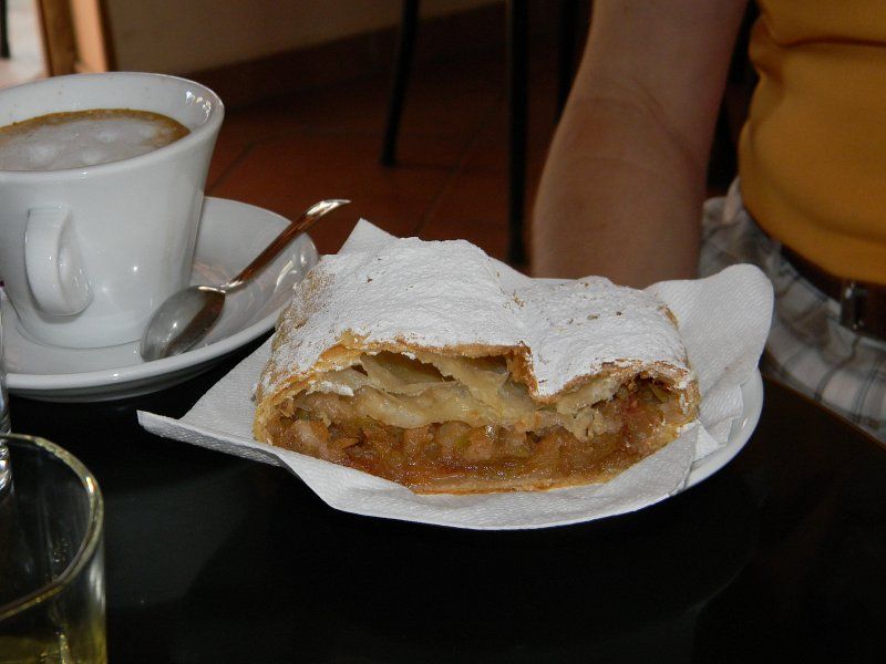 Ja pri Eniu je še vedno enakega okusa. Peče ga žena od trgovca, ki ima poleg Mamila trgovino, mislim da je Ive, sej smo prijatli, ampak sem njegovo ime nekaj zamešal, potem me je bilo pa sram ga še enkrat vprašat. Enio pravi, da je ta štrudelj zato tako dober, ker je iz ukradenih , soedovih jabolk. Moja draga je z njim začela vsak dopustniški dan. Sej bi jaz tudi ampak malo pazim na kile, pol pa se je treba čemu odpovedat.