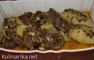 domov » foto albumi » album: Kosilo je na krožniku » Pečen krompir s korenčkom in čebulo, jagenjček