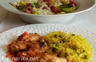 domov » foto albumi » album: Kosila v letu 2021 » Panirana polnjena paprika (rezina sira zavita v šunko), pečeni melancani s česno