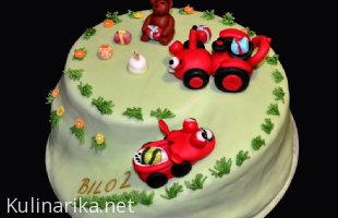 A smem kar tu vprašati... Že lep čas si belim glavo (pa sem že tako blond :)) kako naj naredim tak razgiban teren kot je na tej sliki? Je to biskvit tako odrezan? danes pečem torto za svaka, in bi rada ponazorila kolesarja ki se spušča po hribu, zato ne vem kako narediti hrib :).