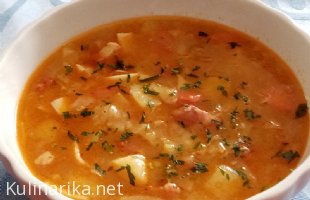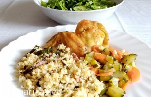 domov » foto albumi » album: Kosila v letu 2021 » Štefani pečenka, grahova omaka, polenta /zdrob s feto in kajmakom; zeljnato zele