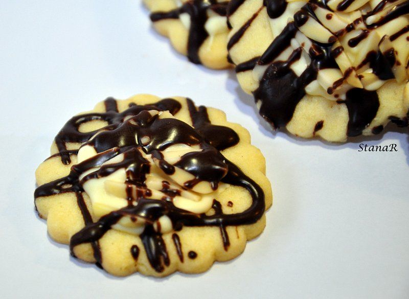 domov » foto albumi » album: Pecivo, piškoti » Piškoti z belo čokolado, mandljevimi palčkami in črno čokolado