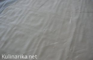 domov » foto albumi » album: Jabolčni zavitek » Testo damo na pomokan prti in ga malo sploščimo.