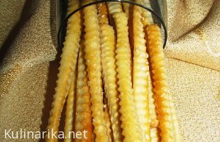 Mandlje, moko sladkor v prahu, 2 rumenjaka in nekaj limoninega soka zmešamo v skodeli. Dodamo 95 g masla in zgnetemo gladko testo. V hladilniku naj počiva 45 minut.
