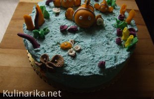 Sorry, metuljček je iz marcipana, izrezan z modelčkom. Čisto preprosto. Pa malo pobarvan.