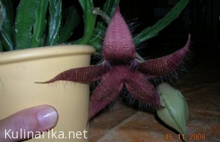 Sicer nisem Kyara, ker pa imam rahlo poklicno deformacijo in rada kaj povem, bom kar napisala, da je to po moje sočnica, ki se ji reče stapelija. Cvetovi imajo omamen vonj, ampak samo za muhe. Torej lahko misliš, po čem "dišijo", hehehe.