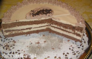 Ti bom kar recept za kremo prepisala. (Biskvit je v bistvu klasičen, dodana pa je tudi žlička cimeta, žlica orehov in kakav).