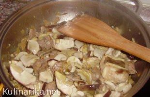 Ko je bilo meso mehko, dodala sem žlico drobtin,