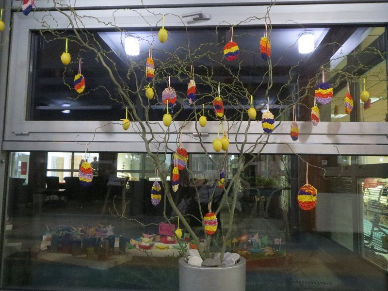 domov » foto albumi » album: DSO Fužine - 2016 » Zanimiva velikonočna dekoracija na razstavnem hodniku
