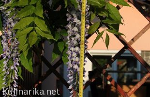 Vanja, tale moja glicinija je ene posebne sorte - takšne, za ljudi jezit. Imam jo sigurno že 10 let. Nekaj let sem jo imela samo za senco in sem cvetove le sanjala. Po kakšnih sedmih letih se je odločila, da bo le naredila en cvet in je bil ta orjaški. Naslednje leto zopet nič. Čez eno leto naredi nastavke za dva (cela dva!) cvetova, pa jih po nerodnosti odlomim