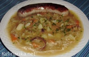 domov » foto albumi » album: Kosilo je na krožniku » Piščančji koščki s papriko in grahom v omaki, krompirjevi svaljki