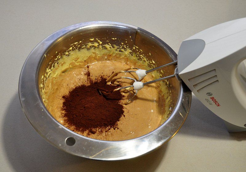 To je kakav. Če sem čisto iskrena, sem spregledala, da se da čokolada v prahu. Evo, torej rata v obeh primerih in je s kakavom malo bolj temen biskvit.