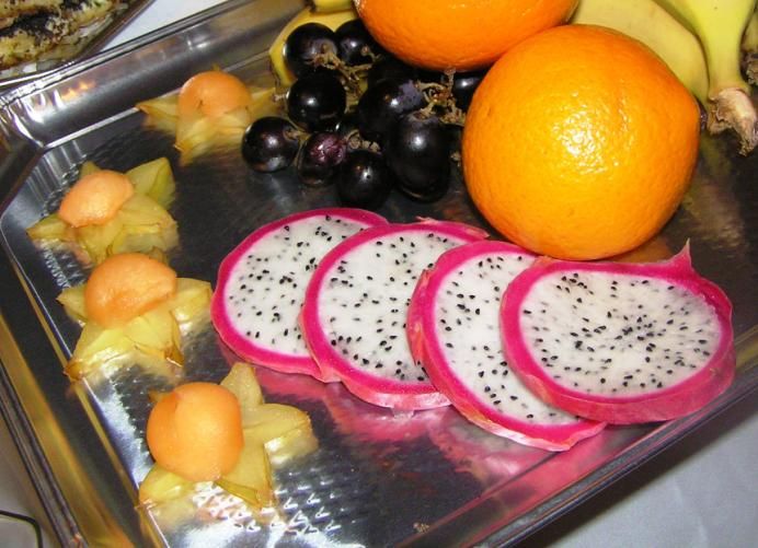 ..sem prej mislila, da je tisto rdeče izdolbljena rdeča pesa z enim skutnim nadevom... ajej, ajej. Torej je to pitahaya?