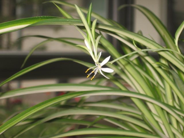 Tole pa ni travca, tole je kosmuljka, ki seveda cveti, cvetovi so podobni lilijam, saj je sorodnica. Potem pa med cvetovi požene nove poganjke, ki se z lahkoto ukoreninijo..... Zelo trpežna rastlina, bolj, ko je na svetlem, večji del listov je bel in obratno. Obstajajo tudi povsem zelene varinate, seveda.