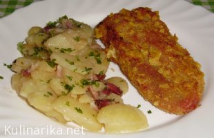 Goveji file s štruklji in rdečo vinsko omako z grenivko
