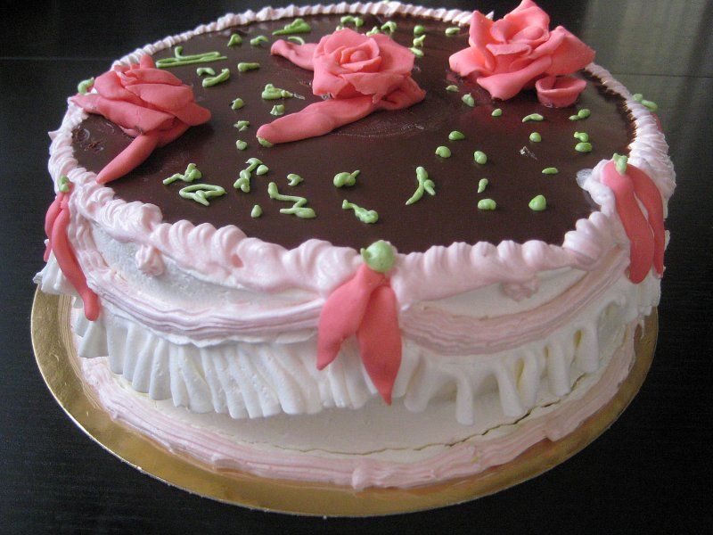 Tole torto sem delala na tečaju pri g. Goljatu. Ni ravno nek presežek ampak pri tej torti sem se učila delat volančke. Obstaja poseben nastavek za brizganje, ki se dobi v trgovini Pekarne Vrhnika v Črnučah.