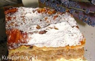 Biskvit, rumen žele, albert keksi, bela krema in čokoladni preliv.