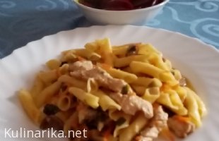 Njoke s feta sirom, bučkami in pečenim pršutom Anton