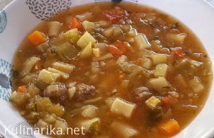 Casarecce iz čičerike z bučo, porom, brokolijem, šetrajem, parmezanom in olivami