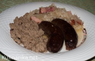 domov » foto albumi » album: Kosilo je na krožniku » Kuhani štrukli /polnjeni s feta sirom/, svinjsko meso s paradižnikom in papriko