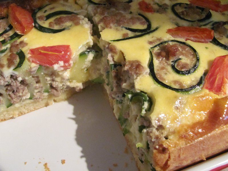 Pekač obložiš z slanim testom za pite.Mleto meso popražiš(čebula,sol,poper) ,nato narežeš bučke na trake ,meso razporediš po bučkah,ter zaviješ v roladice . Roladice pokončno postavimo v pekač in prelijemo z jajčno zmesjo(3jajca,1 kisla smetana,sol).Pečem 40 minut pri 180°c.