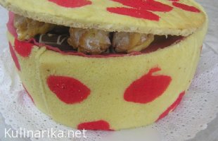 Tale til me je pa v bistvu malo presenetil. Sem hotla dat gor mašno iz tičine, pa mi ni bilo všeč. Kličem sestro, ki je morala pridet po torto, naj mi prinese spotoma še eno živo rdečo mašno, trak pa naj bo vsaj 3 cm širok. Prinesla je tole. Najprej se mi je zadeva sicer zdela grozno velika, ampak je v končni fazi super izpadlo. Pa še barvo mašne je idealno ujela.