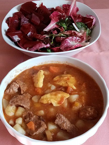 domov » foto albumi » album: Kosila v letu 2020 » Goveji golaž z žličniki, radič/rdeča pesa