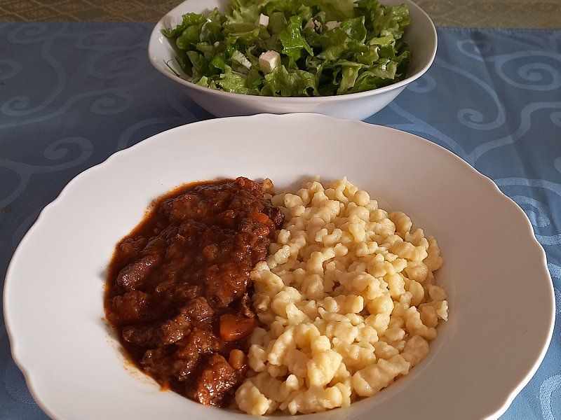 domov » foto albumi » album: Kosila v letu 2025 » Goveji golaž, špecli; zelena solata