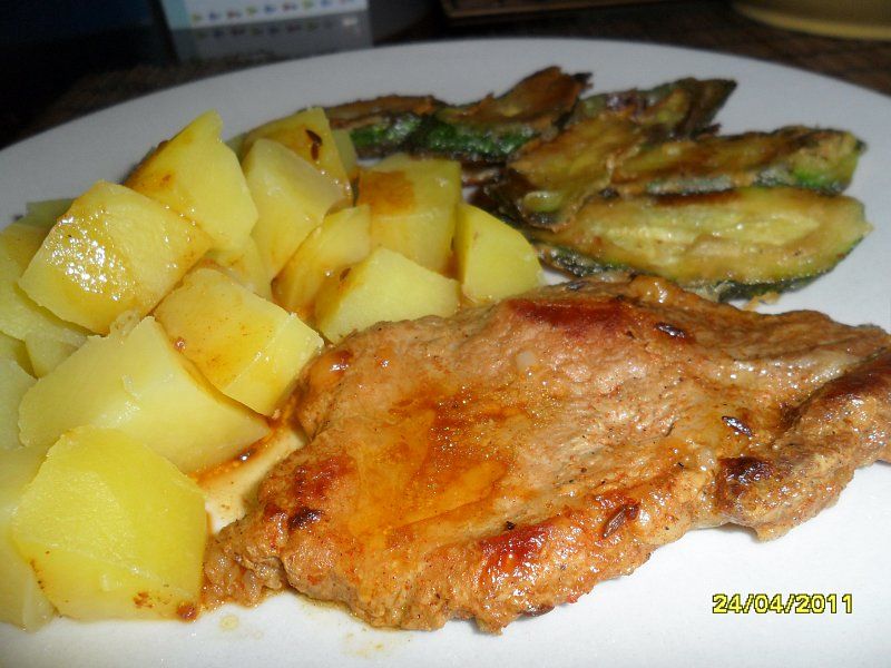 domov » foto albumi » album: kosilo pri nas doma » naravni sv.zrezek,krompir v kosih,ocvrte bučke