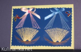 Dobila sem take kartončke z "okenci", pa nisem vedela, kaj naj, sem zadaj nalepila vzorčast papir, spredaj na "vejice" pa samolepilne rožice, pa bo za porabit. S temi res ni bilo skoraj nobenega dela.
