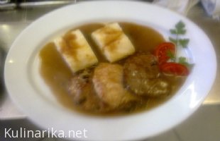 Goveji file s štruklji in rdečo vinsko omako z grenivko