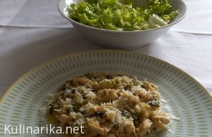Polžki s krompirjem, ohrovtom in sirom