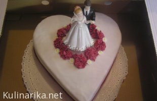 Nevesta ima v šopku bele marjetice in rdeče nageljne (pa vso ostalo dekoracijo, za obleko pa niti ne vem, sigurno v stilu). Ko sta se prišla menit za torto sta prinesla en bordo rdeč srček, tak, kakršne barve sta želela imeti dve torti (problem, pa mi je ratalo v nulo), pa tri bele. Za nageljčke in marjetice smo se pa tudi odločili glede na šopek in ostale zadeve.