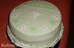 A trak z napisom je iz tičine mase položen na čokoladni obliv?