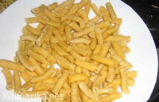 Kot je v opisu testa omenjeno,se naredi testo samo napol,torej le toliko da se sprime,pa še to ne povsem,vmes je celo še moka.Zahteva nekaj prakse.