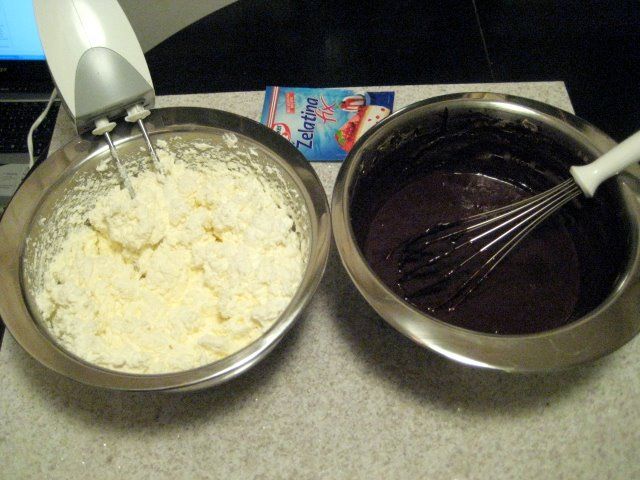 domov » foto albumi » album: Antilska temna torta » Bela tvarina in ohlajena kavno-čokoladna tvarina.
