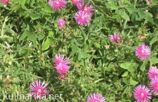 Mesembryanthemum , slovenskega imena ne vem, pri nas jo imenujemo rizek ( risùs), ker ime listke podobne zrnu riza) ![]()