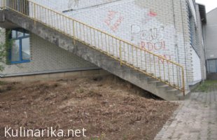 fotografija: ... tik nasproti vhoda pa neurejeno parkirišče z odsluženim jeklenim konjičkom.