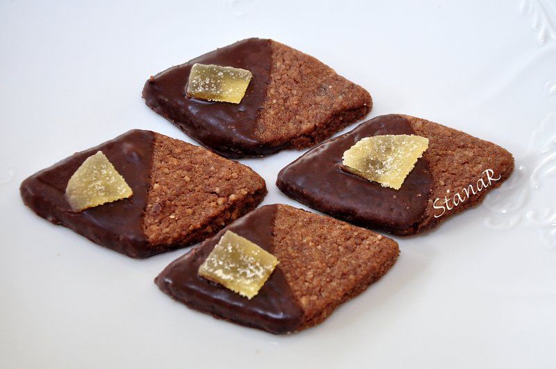 domov » foto albumi » album: Pecivo, piškoti » Temni čokoladni trikotniki - z kandiranim ingverjem