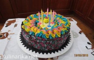 Se mi zdi, da mi ni najbolje izpadel, saj je bil narejen v pomanjkanju časa (kaj hočem, v tistem času je bil NUJNO potreben babica servis skoraj cel dan, zato je bil levček narejen res zelo na hitro). Mi je "starejši" bolj všeč. Ampak bil je pa zelo dober, smo celega zmazali. Najlepši od vsega so mi bili pa štirje bidermajer šopki od mojih štirih zlatih sončkov.