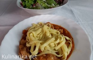 Ploščati špageti s pestom iz bazilike in feferonov, šparglji in lososom
