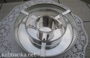 Modelčki so trije okrogli, enakih velikosti, vanj pa daš enega, ki ti razdeli testo. Testo potem izmenično vlivaš v modelček. Ko bom doma, bom poizkusila skenirati modelček, da si boš lažje predstavljala, kako to gre.