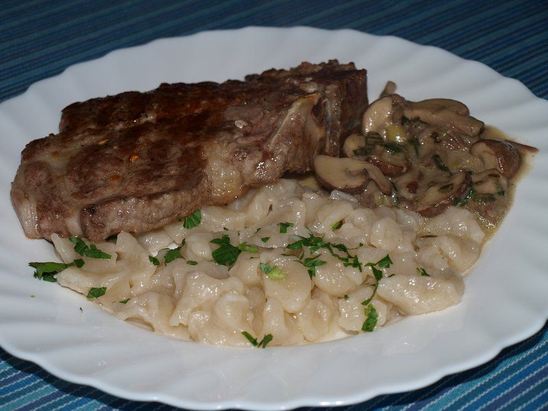 domov » foto albumi » album: Kosilo je na krožniku » pečena vratovina, temni šampinjoni v omaki, ščipanci