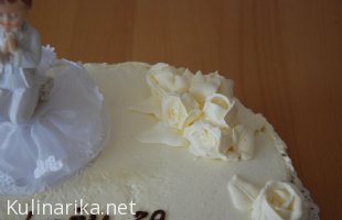 Vrtnice so brizgane z masleno kremo.So hoteli tortico brez e-jev, zato so kar bele.