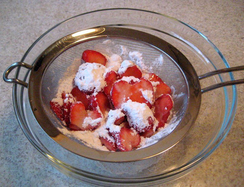 domov » foto albumi » album: Majska torta » Močno osladkane jagode puščajo sok, ki ga uporamo za dokončanje kreme.