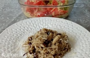 fotografija: Ajdova kaša na slanini, dušene bučke s šalšo, po pariško panirana vratovina; zel
