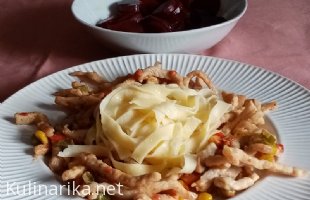 Spaghettoni z omako iz kozic, paradižnikov in sveže bazilike