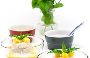 domov » foto albumi » album: Ko ne pečem tort ... » Lepljiv riž z mangom kot sladica, zajtrk ali večerja