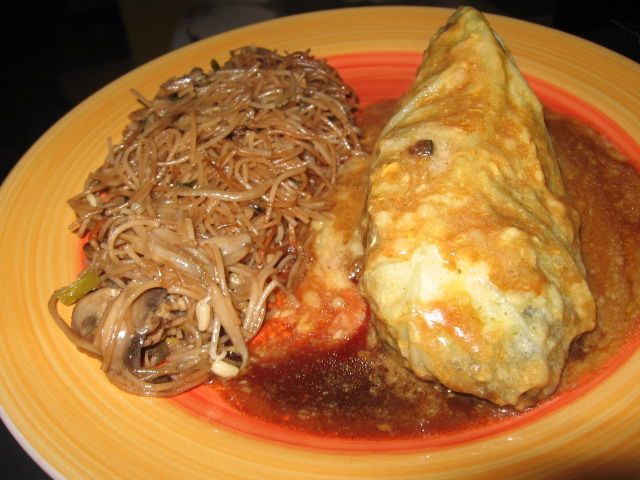 Ploščati špageti s pestom iz bazilike in feferonov, šparglji in lososom
